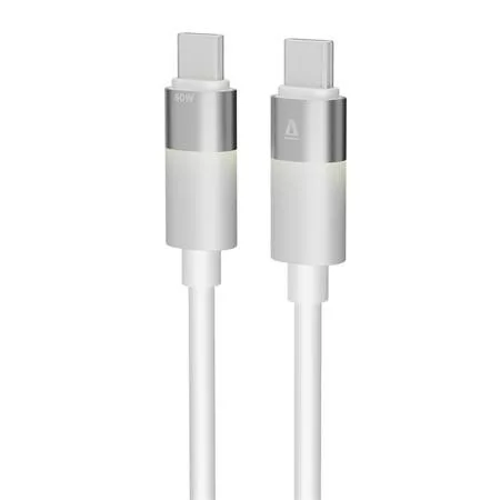 Töltőkábel, USB-C - USB-C, 60W, 1 m, AVAX "CB316 Glowy", fehér