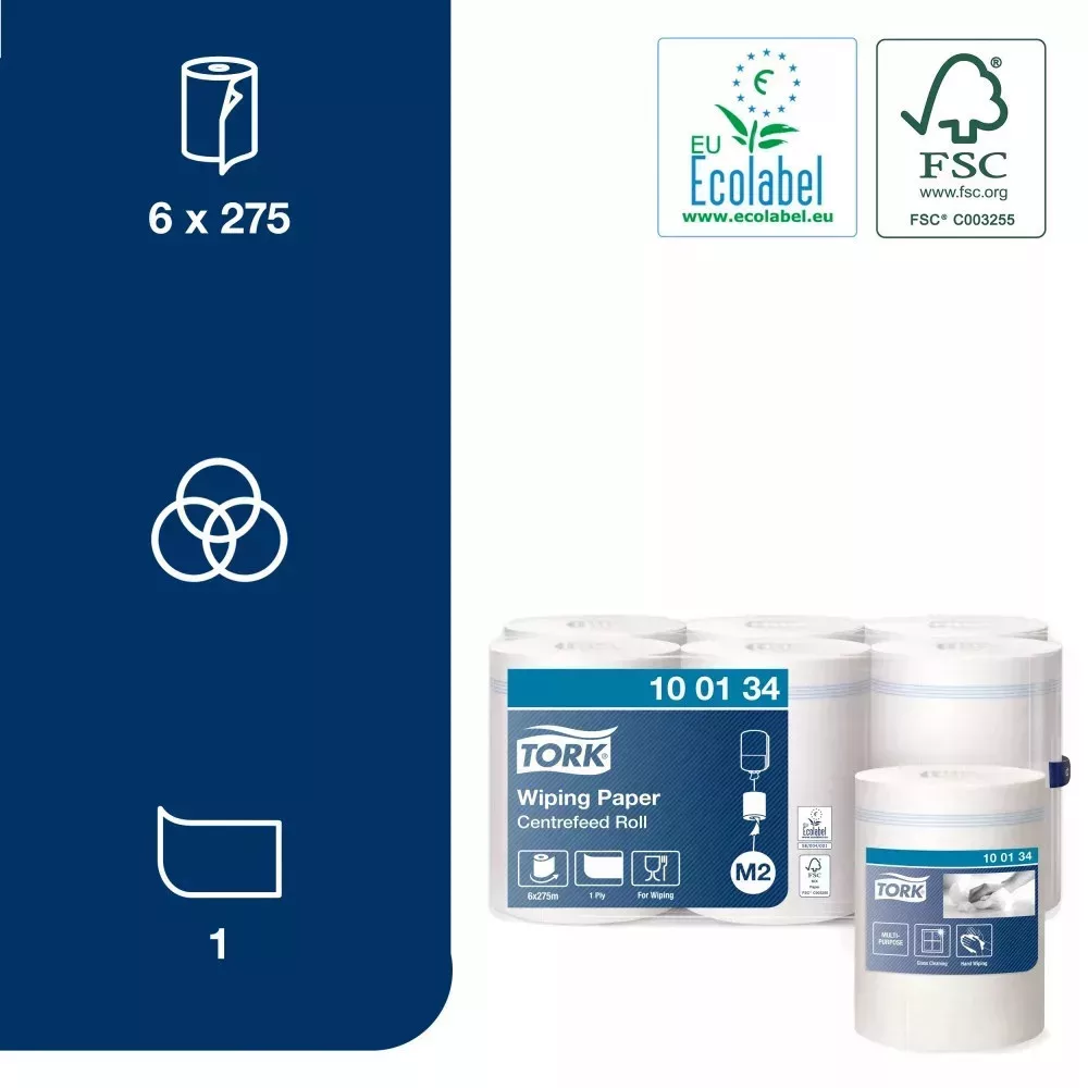 Az egyrétegű, többcélú Tork törlőpapír enyhébb szennyeződések feltörléséhez és kéztörléshez ideális. A törlőpapír a Tork Mini belső magos adagolóba illesztve használható, amely nagy kapacitású és sokoldalú megoldás minden olyan professzionális környezetben, ahol előírás a tiszta, száraz kéz és felület.