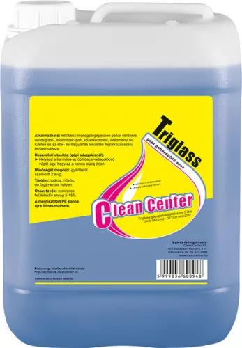 Gyorsan száradó, csillogó poharak. Lágy vízhez: vízlágyítóval használt gépekhez kifejlesztve. Elősegíti a fertőtlenítést: felületi hatása segíti a bojler vizének terülését az elöblített poharakon, eszközökön, ezzel megteremtve a fertőtlenítéshez szükséges körülményeket. Gyors és cseppmentes száradás: a Triglass gépi pohármosogató szer használata gyönyörű, csillogó poharakat eredményez. Egyenletesen oszlik el a poharakon, ezért cseppmentesen szárad. Öblítés után néhány másodpercen belül megszárítja az elmosogatott tárgyakat. Csillogó poharakat biztosít. Íztelen: a poharakban kínált italok élvezhetősége megmarad. Nem befolyásolja a sör habzását. Foszfátmentes: a csatornákon keresztül, az állóvizekbe jutó foszfátterhelés eutrofizációt okoz, amely a halállomány és a helyi fauna pusztulásához vezet. A Triglass gépi poháröblítő szer foszfátmentes összetétele környezetbarát mosogatási technológiát tesz lehetővé. Súly: 5,35 kg. Adagolás: automata adagolás 1 liter vízhez 0,1-0,7 ml.