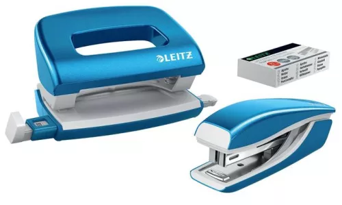 Tűzőgép és lyukasztó szett, 10 lap, fém, LEITZ "Wow Mini", kék