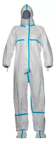 • DuPont™ Tyvek® 600 Plus kapucnis overall zoknival • rögzített zokni és csizmaszár • varrott és ragasztott varratok • hüvelykujj hurok • rugalmas csukló, boka és csuklya • rugalmas derékrész (ragasztott) • Tyvek® cipzár • tépőzáras fedőpántok • fehér • az (EU) 2016/425 rendeletnek megfelelően tanúsítva • Vegyi védőruházat, III • kategória, 4-B, 5-B és 6-B típus EN 14126 (fertőző anyagokkal szembeni védelem) • antisztatikus kezelés (EN 1149-5) - mindkét oldalon