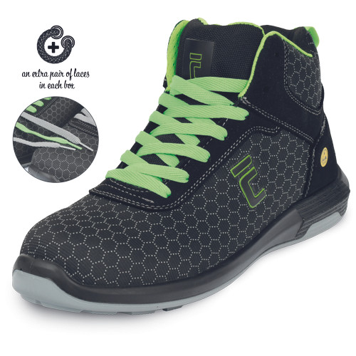 • fémmentes ESD biztonsági bakancs üvegszálas kompozit lábujjvédővel és "S" típusú többrétegű PES átszúrás ellen védő köztalppal • magas szintű viselési komfort és tartósság a dupla sűrűségű PU/TPU talpnak köszönhetően • a felsőrész innovatív PUTEK anyagból készült, amely könnyű, kopásálló, kiváló lélegzőképességű, és vízlepergető is egyszerre • ideális beltéri és kültéri munkához egyaránt