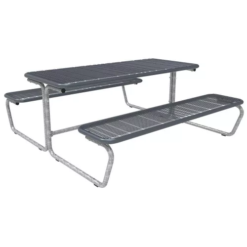Ülőgarnitúra, amely a következőket tartalmazza: 2 háttámlás pad, dróthálós ülőfelület, 1 asztal, dróthálós asztallap, szélesség x mélység x magasság 1800x2076x827 mm, magasság 703