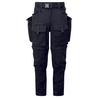 Az Ultimate Modular 3 az 1-ben nadrágkialakítás minden igényt kielégít. A 3 az 1-ben kialakítás a munkanadrágot rövidnadrággá vagy EN20471 1. osztályú munkanadrággá alakítja át. Mindened megvan, amire szükséged van Zsebek mágneses patentokkal vannak ellátva, hogy ne legyenek útban, térdpárna zsebek, nagy beépített oldalsó zsebek a nagy szerszámok, spray dobozok számára, vagy csak hajtsd fel a lábakat rövidnadrágos üzemmódban, és tartsd őket biztonságban. Beépített derékpánt, Lábszár elülső cargo zseb a könnyebb használatért munka közben, Hálós mobiltelefon zseb. Plusz az egyedülálló klipszes zsebrendszer a három zseb használatával, amelyeket a nadrág elejére vagy hátuljára lehet klipszelni.