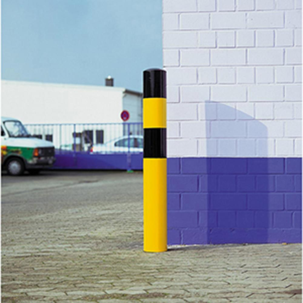 Ütésvédő oszlopok betonba építhető, tűzihorganyzott és sárga műanyag bevonattal, fekete jelzőcsíkokkal, átmérő. 159 mm, hossz 1600 mm