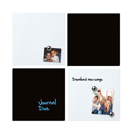 mágneses szárazon törölhető tábla keret nélküli fehér négyzet csempe 360x360mm A csomag tartalmaz: két mágnest GlowWrite szárazon törölhető markert szereléshez :mágnesek és hab ragasztószalag Moduláris rendszer - keverhető és összeilleszthető más Quartet hirdetőtáblával