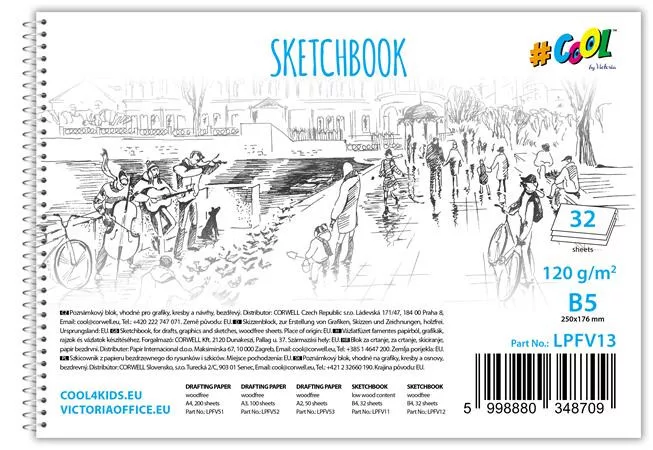 Grafikák, rajzok, vázlatok készítéséhez Famentes B5 32 lap 120g/m2 Itt megtekinthető és letölthető a használati útmutató. Gyártó/első EU forgalmazó elérhetősége: Corwell Kft 2120 Dunakeszi, Pallag utca 37. cool@cool4kids.eu https://victoriaoffice.eu/termekek/cool-by-victoria