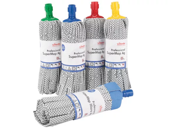 Rendkívül higiénikus megoldások a gyors és intenzív padlótisztításhoz. Még jobb takarítási eredmények. Az új modern dizájn és a hatékony cikkcakkos szélek nem csupán ráncfelvarrások. Teszteredményeink szerint a mopok előző generációjához képest az új SuperMop Ag 30%-kal több laza koszt távolít el, 5 %-kal nedvszívóbb, és még egyenletesebben ereszti ki a vizet, ezáltal mérsékli a csíkok kialakulását és a padlók gyorsabb és egyenletesebb száradását teszi lehetővé. A Monoclick nyélcsatlakozót szintén továbbfejlesztettük, melynek során több mint 20 %-kal növeltük a mop fejet és a nyelet összetartó erőt, hogy a mop fejek biztonságosan csatlakozzanak a felmosás során. Eltávolítja és elpusztítja a baktériumokat. A Vileda Professional az ezüstionok antibakteriális tulajdonságainak és ezen előnyök gyakorlati kihasználásának szakértője. Független vizsgálatok kimutatták, hogy a professzionális Supermop Ag és Supermop micro Ag figyelemre méltó antibakteriális hatása 99,99 %-kal csökkenti a baktériumok szaporodását.