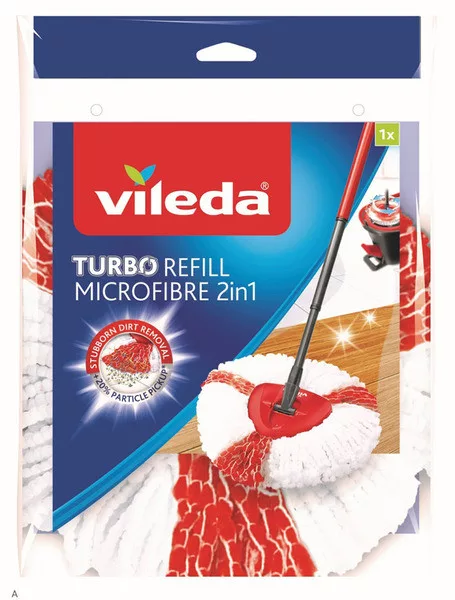 A Vileda Turbo 2in1 felmosófej utántöltője legfeljebb 30 C-on mosógépben mosható, és újra használható, így tökéletes a mindennapi takarítási feladatokhoz. A Vileda szabványainak köszönhetően az utántöltő akár 6 hónapig is használható anélkül, hogy bármelyik tulajdonságát elveszítené.