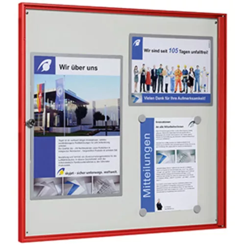 Vitrin, széxméxma 725x27x700 mm, 6xdin a4, piros alumínium profilok, esg üveg, fehér hátlap, mágneses.