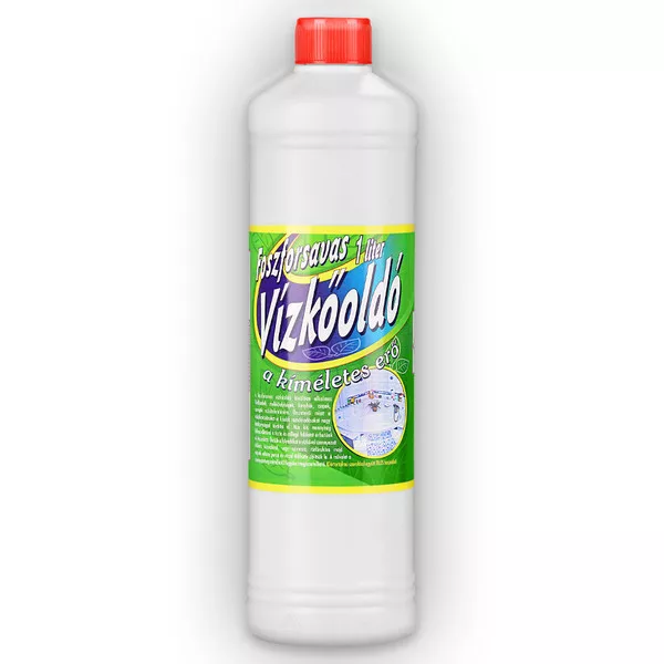 Foszforsavas vízkőoldó: a kíméletes erő! Kiválóan alkalmas fürdőszobák, mellékhelyiségek, konyhák, csapok, csempék vízkőtelenítésére. Összetevői miatt a vízkőlerakódásokat és kisebb rozsdásodásokat nagy hatékonysággal távolítja el. Egyedi összetételű, már kis mennyiség felhasználásával is tiszta és csillogó felületet ér el. Klórtartalmú szerekkel együtt TILOS használni! Kiszerelés: 1000 ml/flakon.