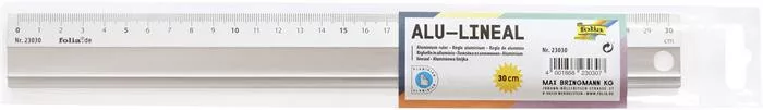 Vonalzó, aluminium, csúszásgátlós, 30 cm, FOLIA
