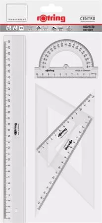 Vonalzó készlet, műanyag, ROTRING, víztiszta