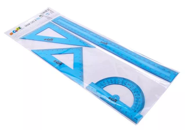 A 4 darabos vonalzókészlet minden szükséges eszközt tartalmaz, így a gyerekek az egyenes és a háromszög vonalzókkal szerkeszthetnek, párhuzamosokat és merőlegeseket húzhatnak, míg az egyéb szögek pontos kiméréséhez használhatják a készletben található szögmérőt is. A szett tartalma: -1 db 30 cm-es vonalzó -1 db 35°-os, 14 cm-es számskálájú vonalzó -1 db 45°-os, 10 cm-es átfogójú vonalzó -1 db 180°-os, 10 cm-es szögmérő Minden darabja átlátszó, hajlékony műanyagból készült. Itt megtekinthető és letölthető a használati útmutató. Gyártó/első EU forgalmazó elérhetősége: Corwell Kft 2120 Dunakeszi, Pallag utca 37. cool@cool4kids.eu https://victoriaoffice.eu/termekek/cool-by-victoria