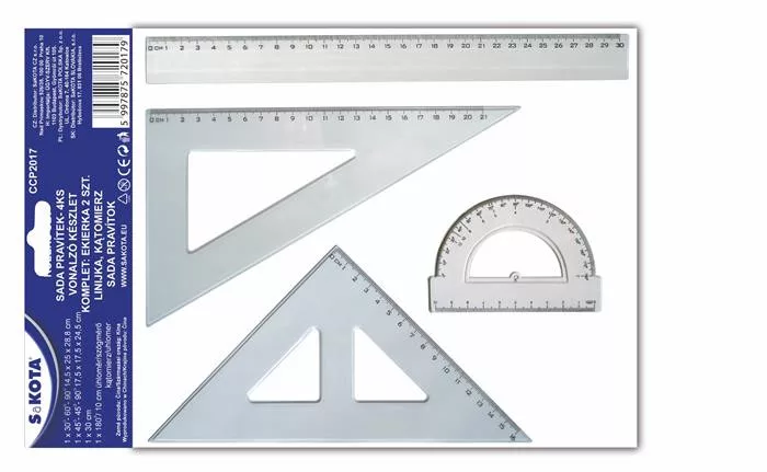 Vonalzókészlet, műanyag, 4 darabos, SAKOTA