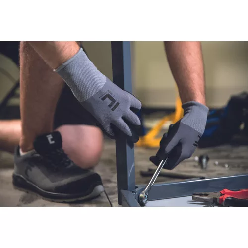 • kötött nylon/elasztán védőkesztyű • nitril mártás a tenyéren az ujjakon
