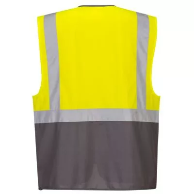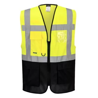 Ez a kéttónusú változat a vezetői mellénykínálatunkban több praktikus zsebbel, kettős igazolványtartóval, d-gyűrűvel és rádióhurokkal rendelkezik. Többfunkciós zsebek, azonosítókártyatartó zseb, zippzáros záródás, mobiltelefontartó zseb.