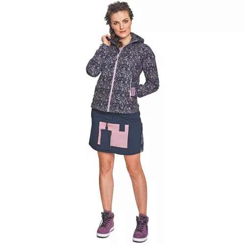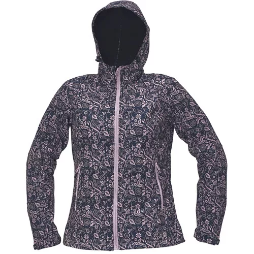 • kapucnis női softshell dzseki mintás anyagból • 3 rétegű kialakítás: a külső réteg alatt TPU mebránnal és polár béléssel • cipzáras oldalzsebekkel és 2 belső zsebbel • húzózsinórral szűkíthető kapucnival és • tépőzárral szűkíthető mandzsettákkal • vízoszlop: 8000 mm • lélegzőképesség 5000 mvp