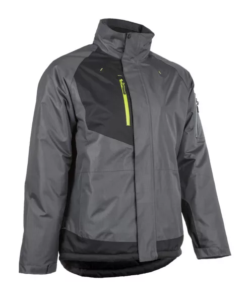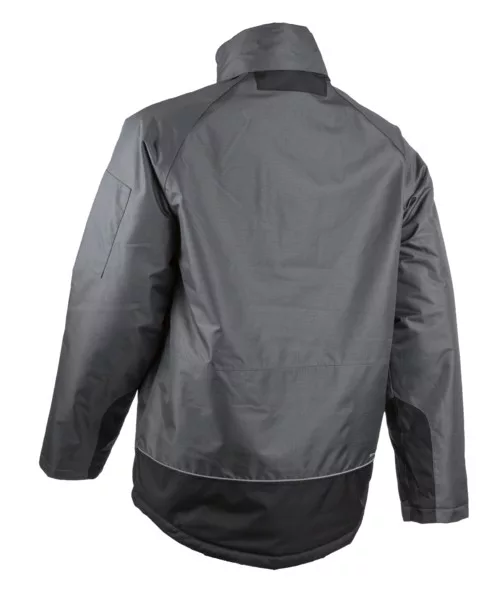 * Külső: RIPSTOP (5mm) : 300g/m2, PVC-vel borított 100% PES alapanyag és 300g/m2 vastag - Belső: 100% poliészter POLÁR (a testen), 180g/m2 vastag 100% poliészter. (a karon) és TAFT BÉLÉS: 100% poliészter. 60g/m2 vastag * Hegesztett varrások * Gallérba rejtett kapucni + Gumírozott húzózsinór* Magas, polárral bélelt gallér és rejtett kétutas cipzár tépőzáras hajtókával - Raglán ujjak* 1 bebújós mellzseb függőleges vízálló cipzárral, 2 fedett és cipzáras bebújós oldalzseb, 1 karzseb vízálló cipzárral + fényvisszaverő csíkkal, 2 tépőzáras belső zseb - 1 fülhallgató zsinórvezető