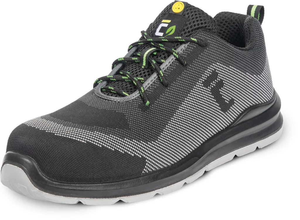 GRS certified safety footwear. Zurrum ECO S1PS safety shoe is an alternative of favorite model Zurrum S1P which is partly produced from recycled materials. The total weight of recycled parts is 23 % (120 g out of total 521 g for size 42). Textile upper made from 100 % recycled polyester, insole contains 90 % of recyclate and anti-penetration midsole contains 60 % of recycled plastics in its composite structure. Composite toe cap. Comfortable double-density PU/PU outsole. Antistatic, ESD footwear. Breathable indoor safety footwear.