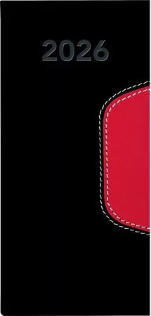 Zsebnaptár, fekvő elrendezésű, DAYLINER, "Memphis", fekete-piros