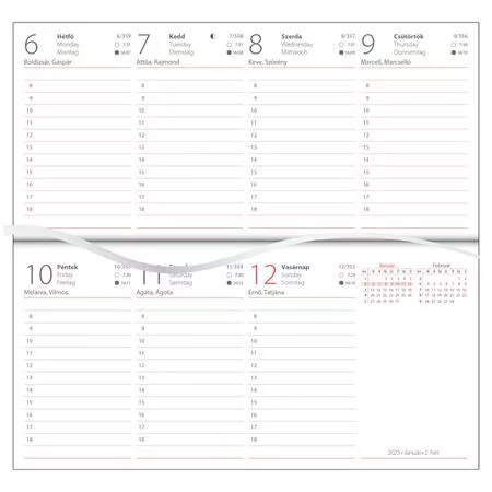 időbeosztás: órás, 8-18.00 h selymes tapintású műbőr borító lap típusa 70 g, fehér ofszet sarokperforációval szürke-vörös nyomat hasznos információk éves tervező telefonregiszter/ jegyzet oldalak