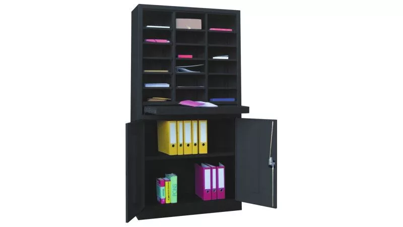 1. 3x6 rekeszes, csuklós ajtós szekrény, ral 7035/5010