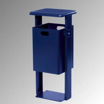 Szögletes szemetes fedéllel, kb. 40 literes, tűzihorganyzott, ral 6005 színű fedéllel és állvánnyal, csavarozható alaplappal