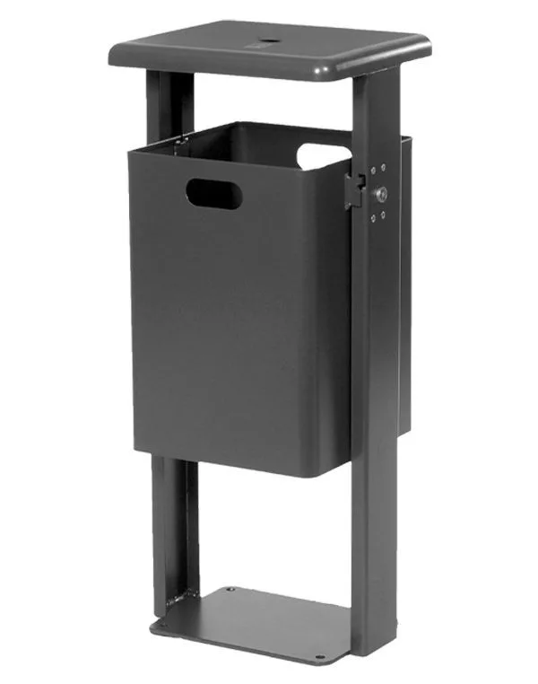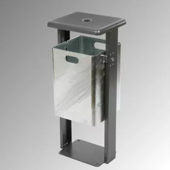 Szögletes szemetes fedéllel, kb. 40 literes, tűzihorganyzott, ral 7016 fedéllel és állvánnyal, csavarozható alaplappal, hamutartós fedéllel
