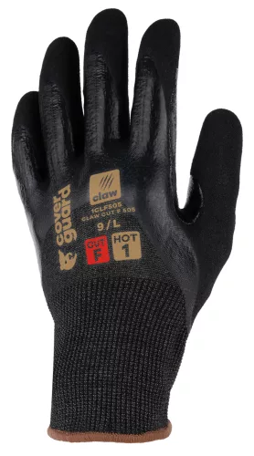 A CLAW CUT termékcsalád egy új generációs vágásálló kesztyű, amelyet a legigényesebb munkákhoz terveztek, magas vágásállósággal (CUT D-től A9-ig), és kiváló kényelmet, valamint kivételes ügyességet biztosít minden munkakörnyezetben (száraz, nedves és olajos).A CLAW CUT F 505 modellt finom anyagmozgatási munkákhoz tervezték száraz és olajos környezetben. A magas 18-as kötés, amely egy rendkívül puha és erős üvegszál, poliészter, acél és spandex alapú anyagból készült, kivételes kényelmet biztosít, miközben maximális vágásvédelmet nyújt (CUT F, az EN388 szabvány szerint).A nitril dupla rétegű bevonat (3/4 sima + tenyér szemcsézett / homokszerű felület) vízálló, és a hosszú megerősítés a hüvelykujj és a mutatóujj között kiváló tapadást és jó fogást biztosít a legigényesebb száraz és olajos munkák során, valamint magas védelmet nyújt a kopás ellen (COVERPERF címke: >20.000 ciklus).A CLAW CUT F 505 újrahasznosított poliészterből készült, és RCS tanúsítvánnyal rendelkezik (a termék teljes súlyának 16%-a). Üvegszál nélkül.Ez a kesztyű érintőképernyő-kompatibilis, lehetővé téve, hogy viselése közben is használja a képernyős berendezéseket.Sanitized kezelés: megakadályozza a baktériumok és szagok fejlődését, és a CLAW CUT F 505 hypoallergén is (COVERPER
