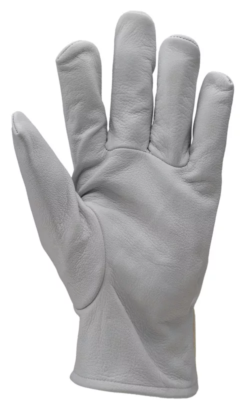 Sofőrkesztyű, kecskebőr tenyér és ujjrésszel, pamut interlock hátrésszel és gumírozott mandzsettával