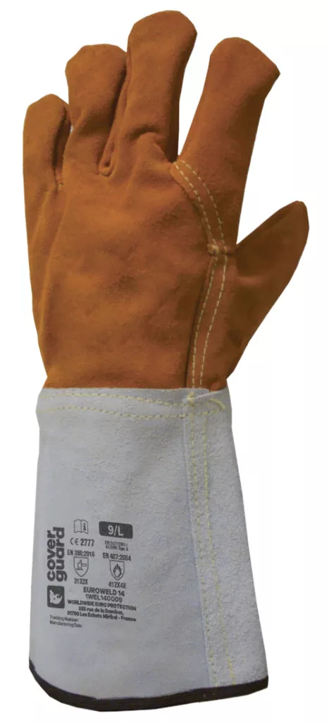 1,2 mm vastag, kiváló minőségű, narancs színű hasított marhabőr hegesztő kesztyűLángálló Kevlar varrás, puha hőszigetelő béléssel15 cm hosszú biztonsági mandzsetta hasított bőrbőlKényelmes és egyben magas védelmi képesség