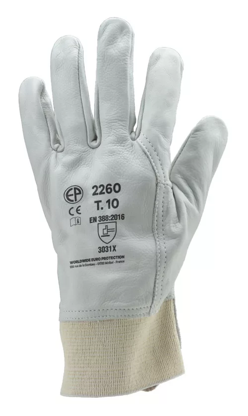 * rendkívül puha, vastag színmarhabőr tenyér és kézhát* megnövelt felületű artériavédő színbőrből* gumírozott, elasztikus pamut csuklómandzsetta* kényelmes, minőségi védőkesztyűEN 388:2016 3031x