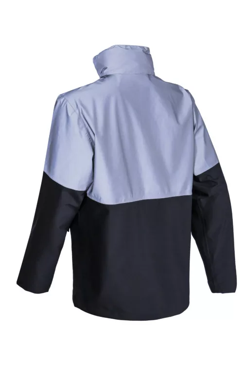 160 g/m2 vastag 2,5 rétegű Softshell fekete alapanyag: 100% mechanikus stretch poliészter + PU membrán és nyomással mintázott kelme * 200 g/m2 vastag 2,5 rétegű Softshell fényvisszaverő alapanyag: 100% mechanikus stretch poliészter + PU membrán és nyomással mintázott kelme * Gallérba rejtett fényvisszaverős anyagú, tépőzárral és zsinórral állítható viharkapucni * 1 felső zseb vízálló cipzárral, 2 függőleges nyílású cipzáras fedett oldalzseb
