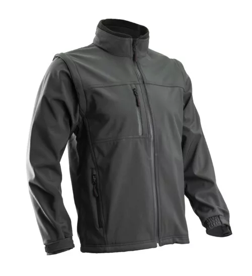 * 2/1-ben szürke kabát/mellény, levehető ujjakkal , három rétegből álló, 310 g/m2-es Softshell(R) anyag * a külső puha, rugalmas réteg 94% poliészter és 6% elasztán , a közbülső réteg vízhatlan TPU membrán, a belső réteg 150g/m2-es mikropolár bélés* állítható aljrész, és derékvédő, gumizott, tépőzáras csukló * 1 felső zseb, 2 oldalzseb vízálló cipzárral, 2 belső zseb