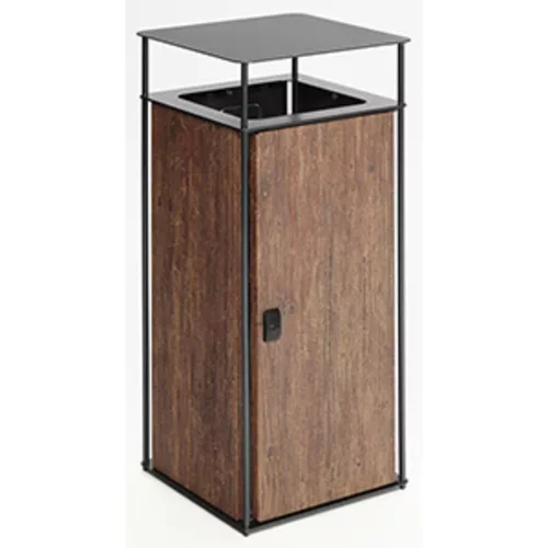 3 mm-es horganyzott acélból készült hulladékgyűjtő, porszórt, zárható, horganyzott. belső vödör térfogata 51 l, széxméxma 400x400x900 mm, oldalak sötét fafóliával