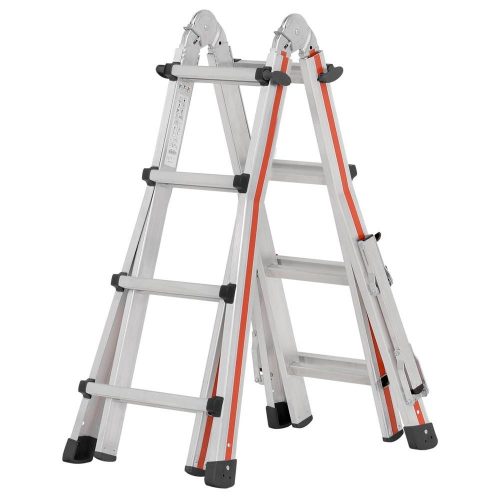 Teleszkópos létra, 4x5 fokos, hossza ferde létraként 5,14 m, kinyújtott állólétraként 2,49 m, összecsukva 1500 mm, 17 kg, kitámasztókarokkal