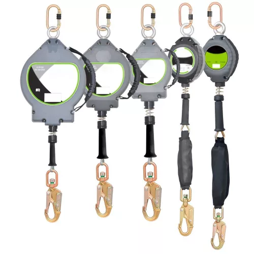 Esésgátló eszköz, horganyzott acélkábel átmérője. 4,5 mm-es, 15 m hosszú, acél karabíner, emelő-süllyesztő funkció nélkül