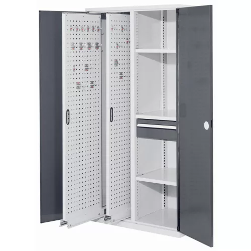 Nagy teherbírású szekrény, ablakos ajtókkal, 3 függőleges fiókkal, széxméxma 1000x600x1950 mm, ral 7035 / ral 7016