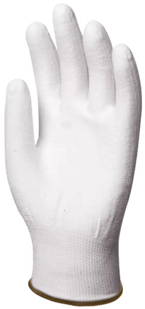 Fehér HDPA-val és elasztánnal megerősített kesztű, 13-mas kötésű, fehér poliuretán tenyér mártással, fonott csuklórésszel