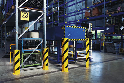 Ütközésvédelem, acél szögvas, sárga/fekete műanyag bevonattal, magasság 1200 mm, vastagság 6 mm, keresztmetszet 160 mm