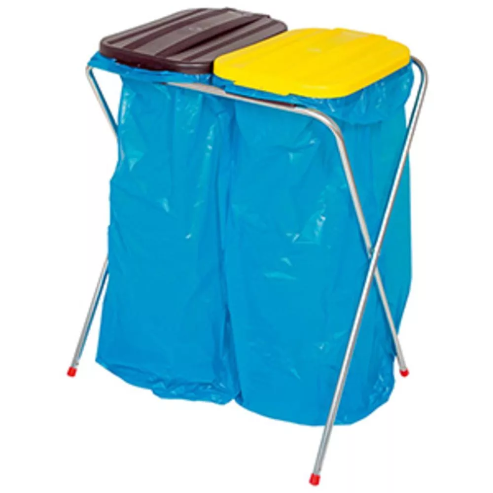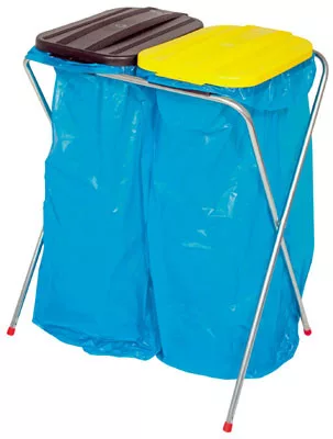 Szemeteszsák-tartó állvány 2 db 120 literes szemeteszsákhoz, szorítógyűrűvel, fix, műanyag fedéllel (1 db fekete és 1 db sárga), széxméxma 660x410x810 mm