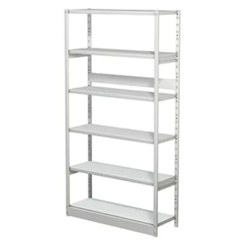 Csavarmentes polc hátlap nélkül, alsó rész, 6 polc, 5 polc, széxméxma 960x300x1900 mm, világosszürke