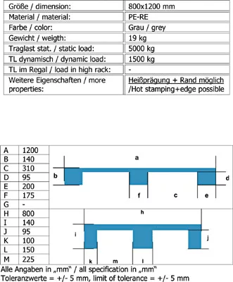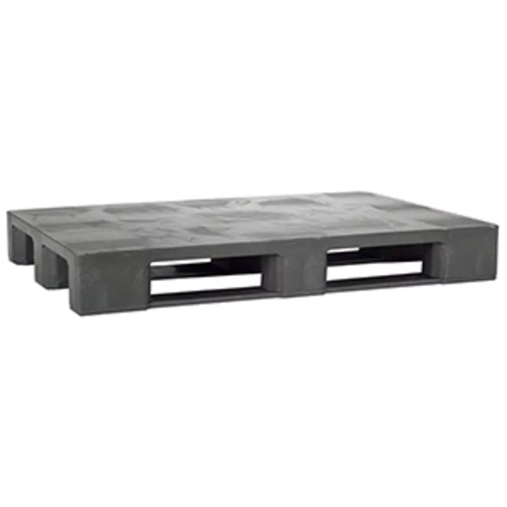 Műanyag raklap, széxméxma 1200x800x140 mm, teherbírás stat. 5000 kg/dyn. 1500 kg/polc 500 kg, 9 láb, peremmel, fekete színű