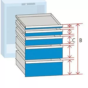 Fiók, hasznos méret szé x mé 612x612 mm, 36x36k, eleje magassága 300 mm, hasznos magasság 279 mm, ral 7035, teherbírás 200 kg