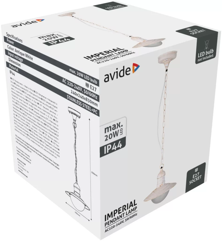 Avide kültéri függesztett lámpa Imperial 1xE27 IP44 antik fehér