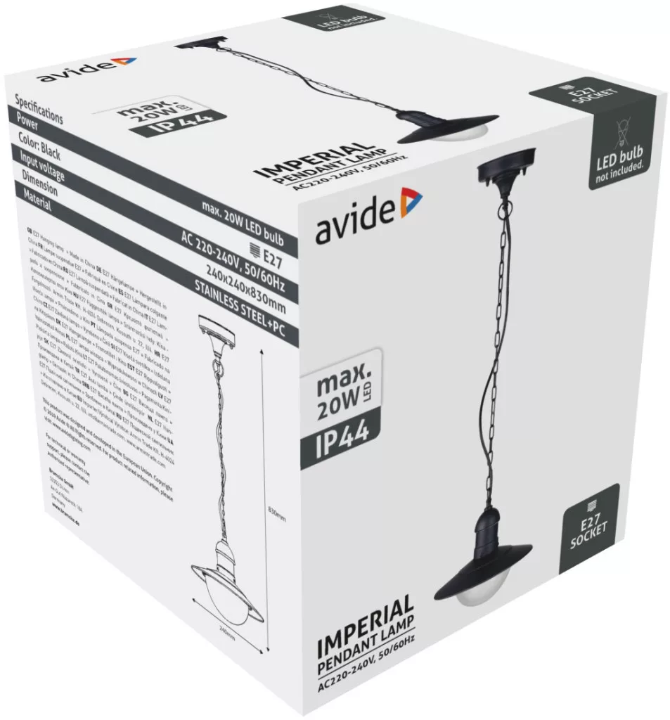 Avide kültéri függesztett lámpa Imperial 1xE27 IP44 fekete