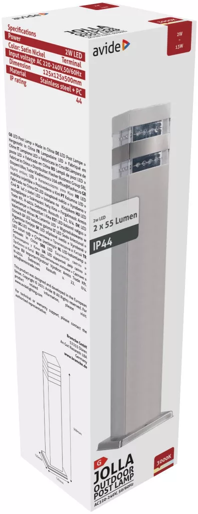 Avide kültéri álló lámpa Jolla LED 2W WW 500mm IP44 Szatén Nikkel