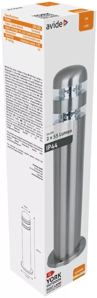 Avide kültéri álló lámpa York LED 2W NW 500mm IP44 Szatén Nikkel