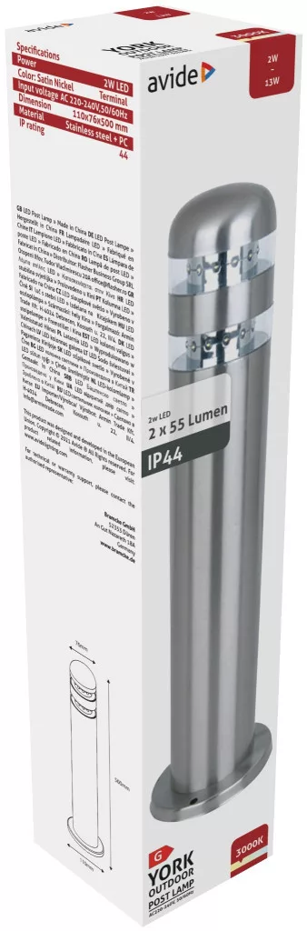 Avide kültéri álló lámpa York LED 2W WW 500mm IP44 Szatén Nikkel